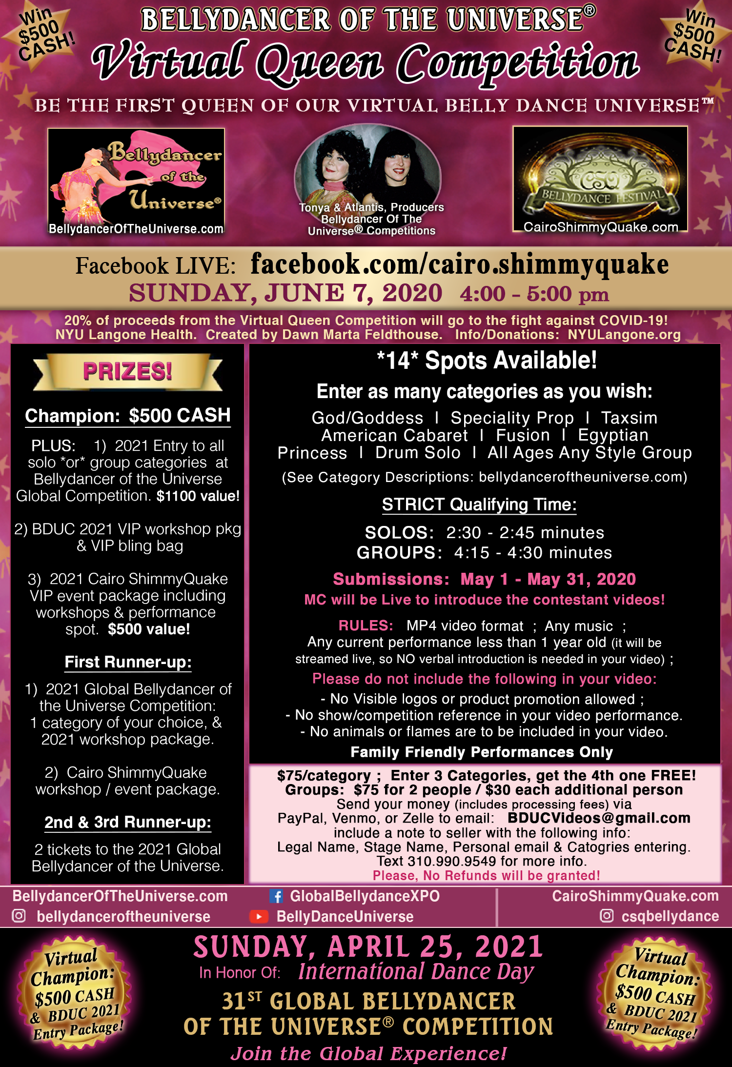 For updates on the Bellydancer of the Universe Virtual Queen Competition,